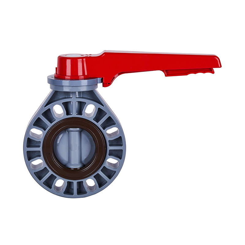 Custom Brand New PVC-C Hand Lever Smooth Stem DN15-200 Butterfly Valve, Gray, DIN, JIS, ANSI Standard, 4-Inch Flanged Plastic Valve ANSI Standard