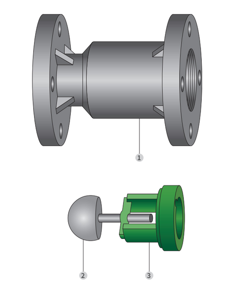 Tota valvula facta est ex nova materia plastica. variis instrumentis acidicis et alcalinis resistentiam validam praebet.