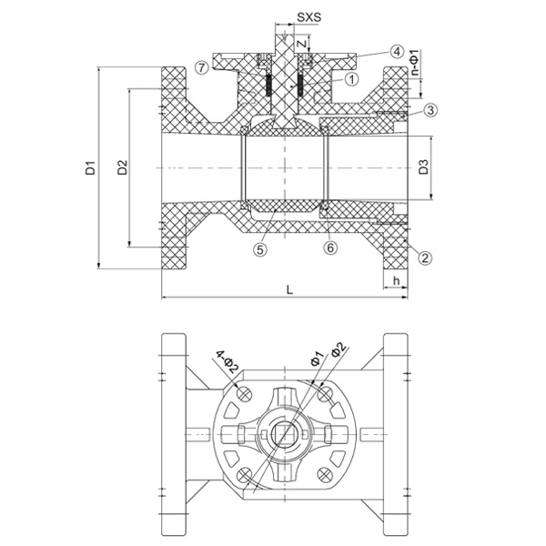 Specification D1(mm) D2(mm) D3(mm) L(mm) h (mm) n-Φ1(mm) Φ1(mm) Φ2(mm) SXS(mm) 4-Φ2(mm) Z(mm)