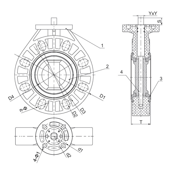 Specification D1(mm) D2(mm) D3(mm) D4(mm) T(mm) n-Φ(mm) YxY (mm) S(mm) d1 (mm) d2(mm) 4-Φ1(mm)